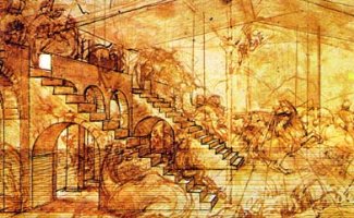 Als Architekt war Leonardo da Vinci u.a. mit den Arbeiten am Mailänder Dom und am Dom zu Pavia verbunden. Außerdem baute er besonders Befestigungsanlagen. Unter den architektonischen Entwurfsskizzen befinden sich Pläne zu mehrgeschossigen Straßen, zu Zentralbauten und monumentalen Grabanlagen. |