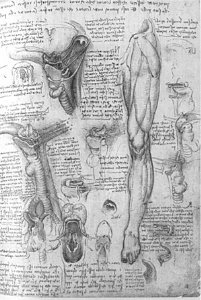| Er konstruierte zahlreiche Maschinen und machte Vorschläge zur Verbesserung vorhandener Ergebnisse auf den Gebieten Optik, Botanik, Geologie und Astronomie. Besonders erfolgreich waren Leonardos Studien im Bereich der Anatomie, die er durch detaillierte Zeichnungen veranschaulichte. Als einer der ersten sezierte er (gegen die Anschauungen seiner Zeit) menschliche Leichen. Als Kunsttheoretiker hinterließ er wertvolle Schriften, z.B. sein Hauptwerk "Traktat über die Malerei". |