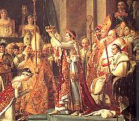 1802 ließ er sich durch Volksabstimmung zum Konsul auf Lebenszeit wählen und am 2. Dezember 1804 krönte er sich im Beisein des Papstes in der Kathedrale Notre-Dame selber zum Kaiser der Franzosen; anschließend krönte er seine Frau Josephine. |