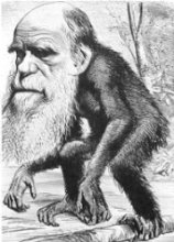 | Seine Theorie wird in der Öffentlichkeit heftig diskutiert und angegriffen. Orthodoxe Gläubige verdammen die Darwinsche Theorie als Atheismus, weil sie der Schöpfungsgeschichte der Bibel widerspricht. Aber auch in weniger orthodoxen Kreisen und bei einem Großteil der Wissenschaftler stößt die Theorie der Abstammung des Menschen von niederen Amphibien- und Tierarten sowie seine Verwandtschaft mit dem Affen auf heftigen Widerstand. Die Evolutionstheorie wird als "Affentheorie" verunglimpft. In zahlreichen Karikaturen und Besprechungen werden Darwin und seine Erkenntnisse in der Öffentlichkeit lächerlich gemacht. |