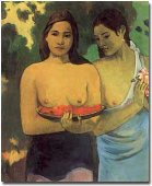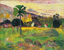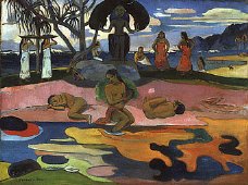 Der französische Maler, Grafiker und Bildhauer Paul Gauguin wurde am 7. Juni 1848 in Paris geboren und starb am 8. Mai 1903 in Atuona auf den Marquesasinseln. Von 1891 bis 1893 und ab 1895 lebte er in bewusster Abwendung von der modernen Zivilisation auf Inseln der Südsee. Seine künstlerische Entwicklung begann beim Impressionismus und bereitete, angeregt von P. Cézanne und V. van Gogh, in einer flächenhaften Bildform mit festen Konturen und meist homogenen Farben den Expressionismus vor; er schuf Gemälde, Holzschnitte und Lithographien mit meist exotischen Motiven in starker Farbigkeit. |