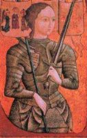 | Jeanne d'Arc oder Johanna von Orléans wurde ca. 1411 in Domrémy-la-Pucelle geboren. Durch "göttliche Stimmen" fühlte sie sich berufen, Karl VII., den rechtmäßigen Herrscher des von Engländern besetzten Frankreich, aus seiner Lethargie zu reißen und 1429 zur Krönung nach Reims zu bringen, sowie das Land von den Engländern zu befreien. |