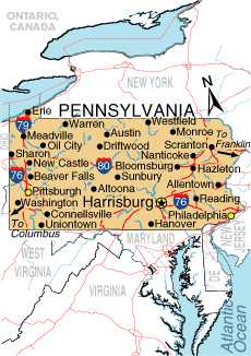 Da er Schuldforderungen gegen die englische Krone geerbt hatte, konnte er von England ein Stück Land in Nordamerika erwerben, das er zu Ehren seines Vaters Pennsylvania nannte. Es sollte ein Refugium für Quäker und andere religiös Verfolgte werden; wichtige Grundwerte der freiheitlichen Verfassung waren Religionsfreiheit und freundschaftlich-nachbarliche Beziehungen zu den Indianern. 1682 gründete er Philadelphia. Sein Friedensplan für einen europäischen Völkerbund (1693) und sein Vorschlag für eine Union der englischen Kolonien in Nordamerika (1697) fanden erst sehr viel später Erfüllung. |