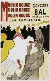 | Am Montmartre in Paris, am Boulevard Clichy, wurde am 5. Oktober 1889 in einer umgebauten Mühle das Moulin Rouge eröffnet, ein Vergnügungslokal, das eine Mischung aus Tanzsaal und Kabarett war, ausgestattet mit verspiegelten Wänden, beleuchtet von rotierenden Glaskugeln mit Gaslicht. Es entwickelte sich schnell zum Zentrum des Pariser Vergnügungsviertels und manchmal musste die Sittenpolizei überprüfen, ob die auftretenden Damen beim Can Can auch Unterwäsche trugen. |