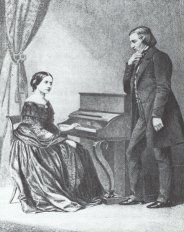 Gegen den Willen ihres Vaters heiratete sie 1840 Robert Schumann, bekam bis 1854 acht Kinder, konzertierte nebenbei aber weiter und komponierte bedeutende Lieder, ein Klaviertrio, drei Romanzen sowie mehrere Klavierwerke. Bis ins hohe Alter blieb sie als Pianistin tätig, als Interpretin vor allem der Werke ihres Mannes (der 1856 starb), sowie Beethovens, Chopins und Brahms'. Clara Schumann starb 1896 in Frankfurt am Main. |