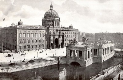 Das Stadtschloss war mehr als 500 Jahre Mittelpunkt Berlins, es war Zentrum der klassischen Meile zwischen dem Pariser Platz mit dem Brandenburger Tor im Westen und dem Alexanderplatz im Osten. 1442 von Andreas Schlüter erbaut, residierte dort bis 1918 das Haus Hohenzollern. Im Bombenhagel vom 3.2.1945 brannte der Barockbau fast völlig aus. |